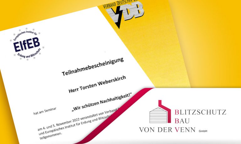 Besondere Auszeichnung für Engagement im Weiterbildungsbereich: Blitzschutzbau VON DER VENN…